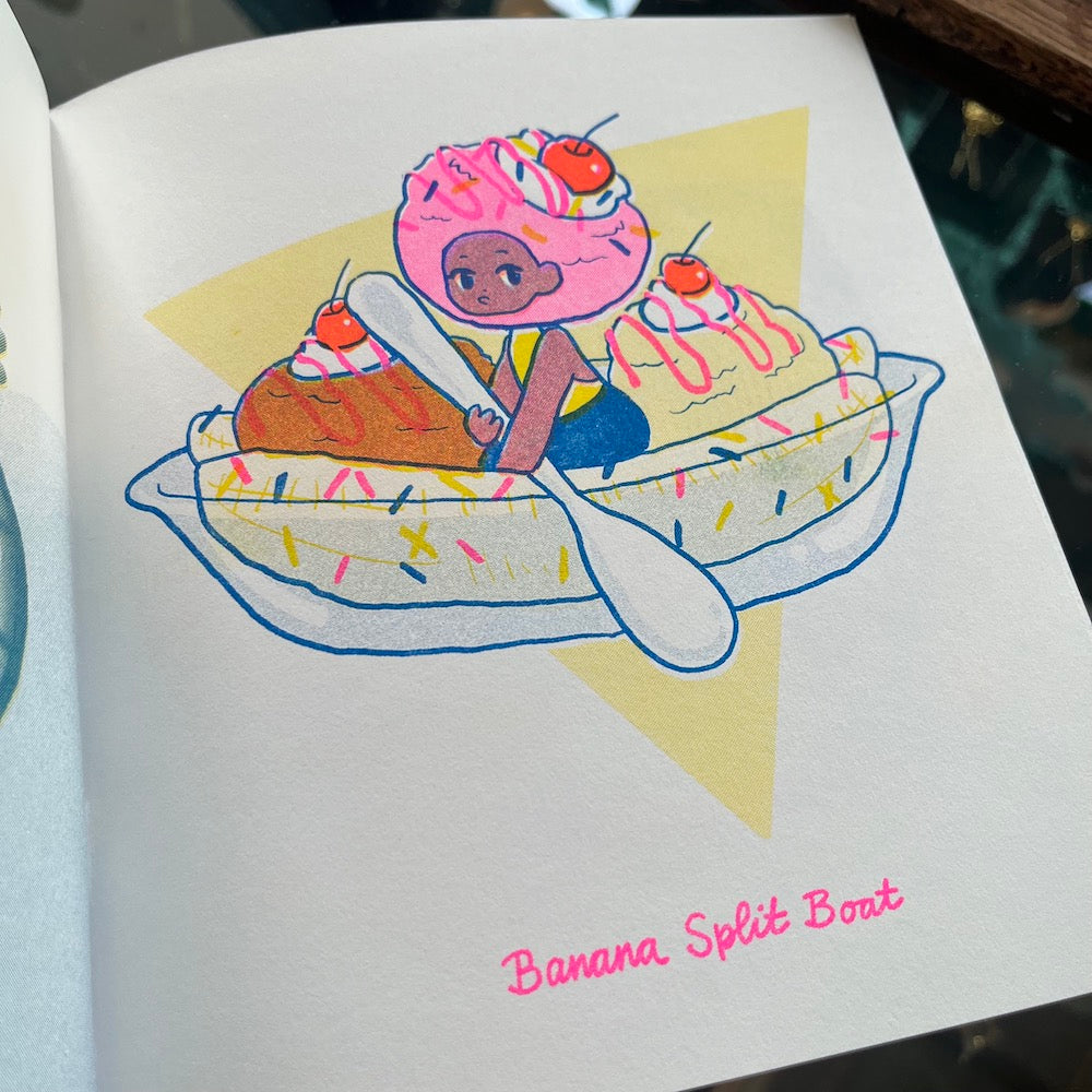 Part-illustrated menu and part-fantasy art book, this zine features 16 illustrations imagining lavish desserts as whimsical creatures like the Mango Ice fox, Cotton Candycorn, and Marshmallow Birds.